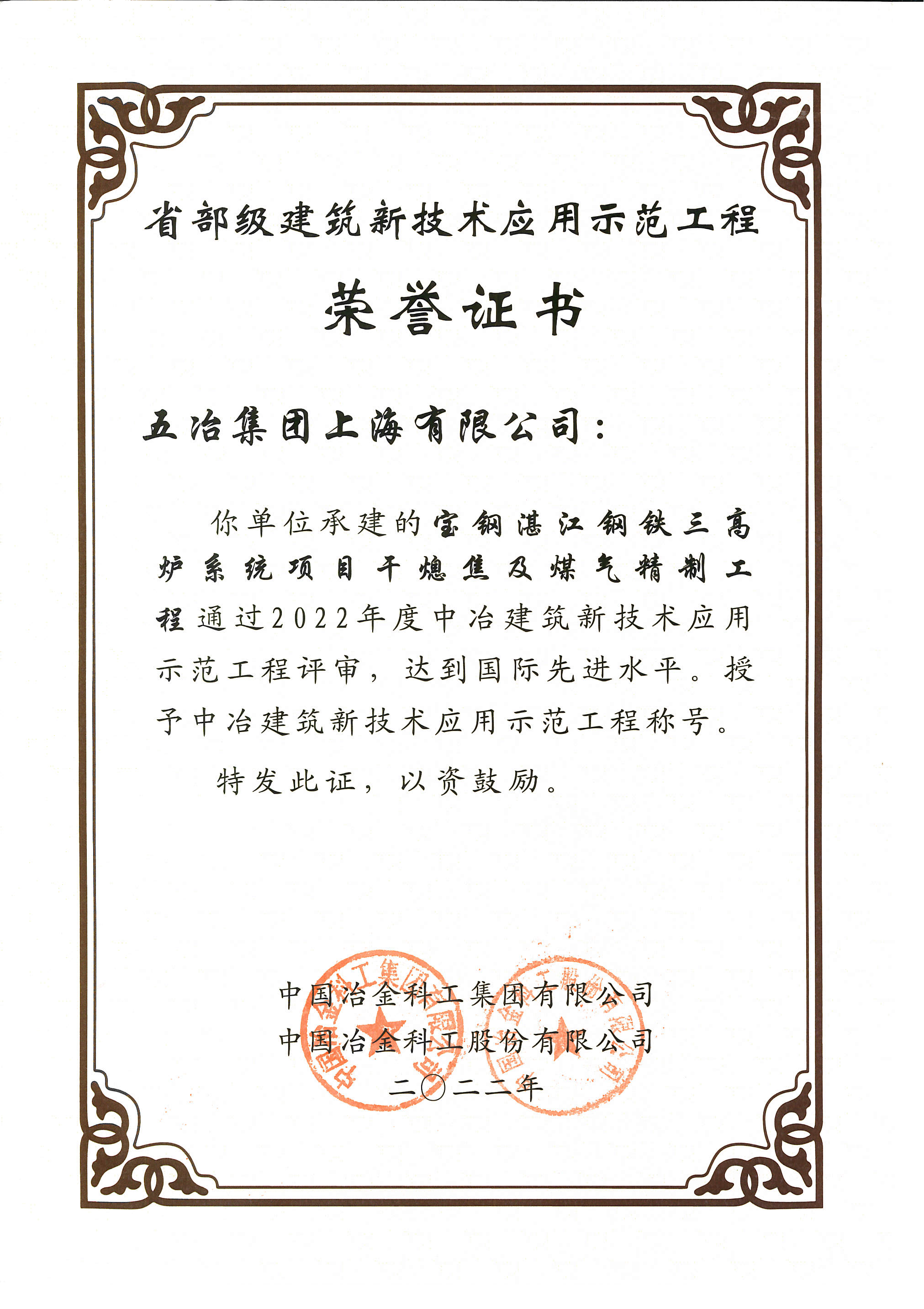 2022年宝钢湛江钢铁三高炉系统项目干熄焦及煤气精制工程-国际先进